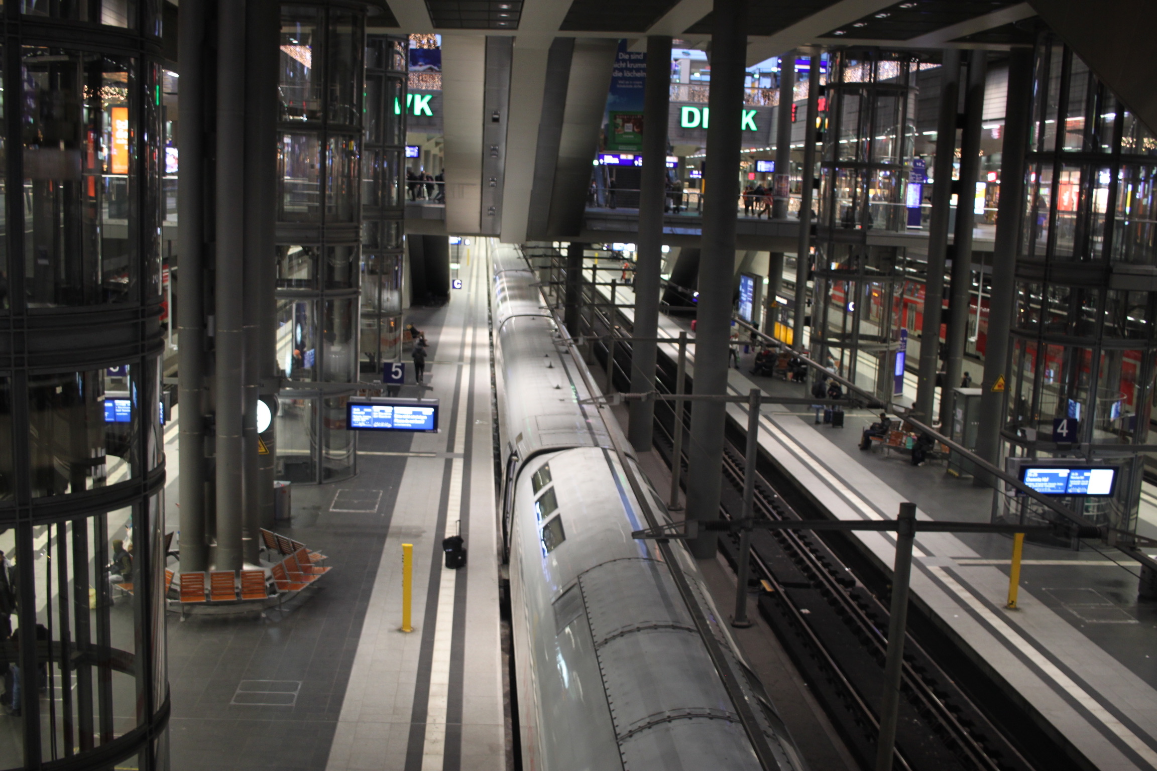 At Berlin Hauptbahnhof I explored the station and it surroundings, notably visiting Mc. Paper a nearby Cafe and a tram stop, but it was quickly approaching the time of our train’s departure so we went down the escalators to reach our platform.